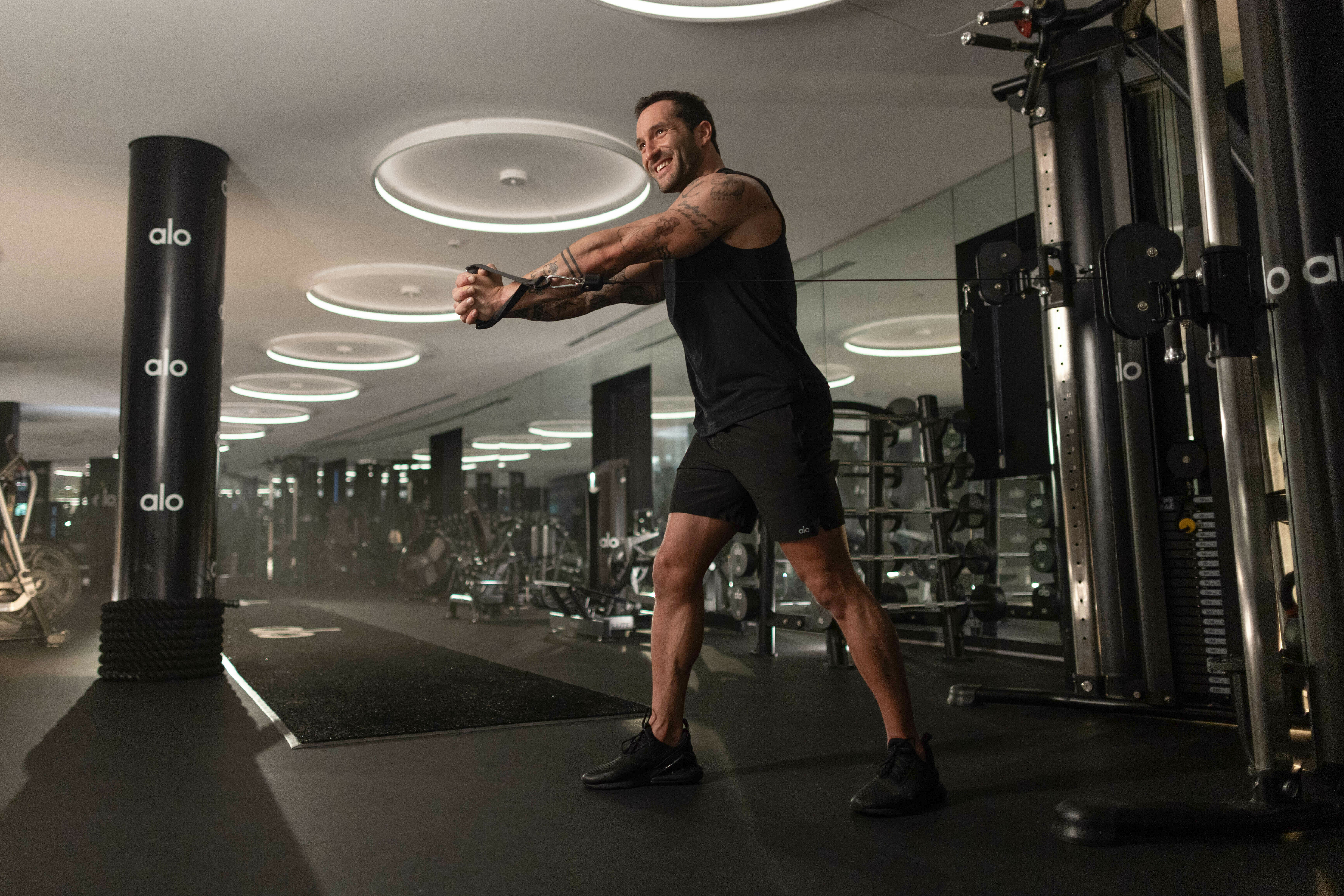 Giorgio Merlino, who goes by Gio at Alo HQ, is a fitness instructor from Italy. He moved to Los Angeles two years ago and is now one of the head trainers at Alo Wellness Club, where he teaches personal workout classes with models, influencers, and athletes.