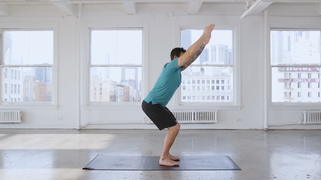 This class will warm you up for a fiery chair pose hold. Prepare to activate your shoulders, back body, legs, and glutes for greater stability and strength.